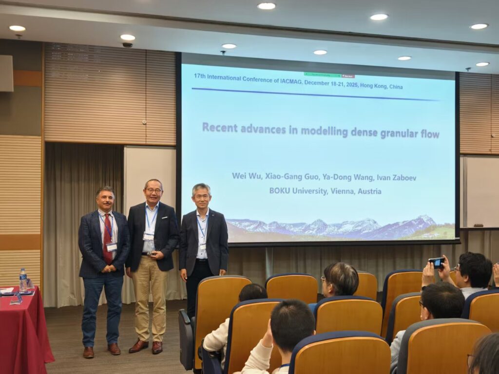 Researchers from the Institute of Geotechnical Engineering (GEOT) at BOKU University attended the 17th International Conference of the International Association for Computer Methods and Advances in Geomechanics (IACMAG 2025), held at The Hong Kong Polytechnic University (PolyU), Hong Kong, China, from December 18 to 21, 2025. The GEOT delegation included Prof. Wei Wu, Dr. Yunteng Wang, Dr. Xuan Kang, and M. Sc. Ruimin Chen.